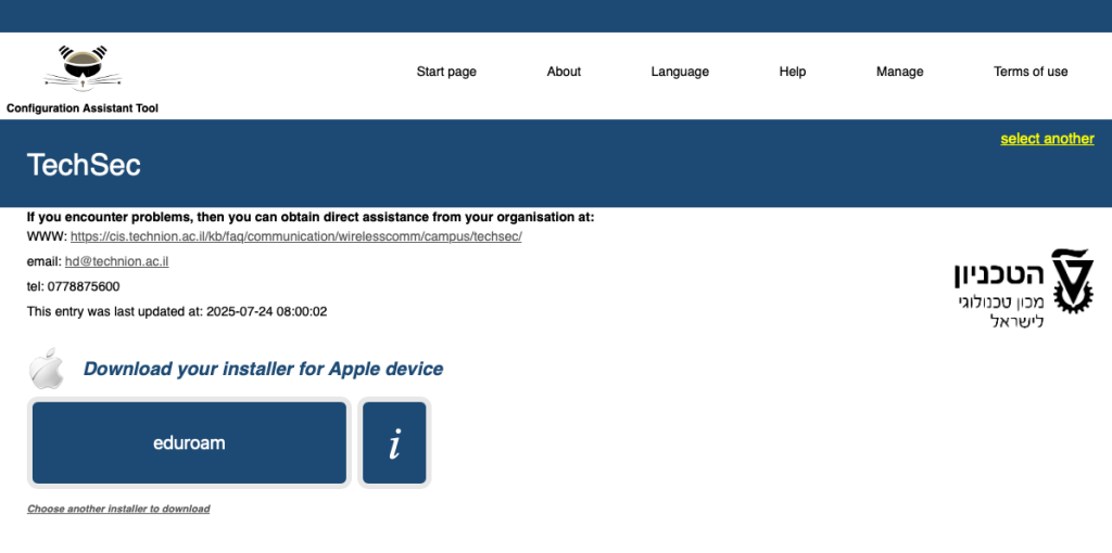 - לחץ על אייקון eduroam. זה יוריד את פרופיל הרשת האלחוטית וישמור אותו תחת