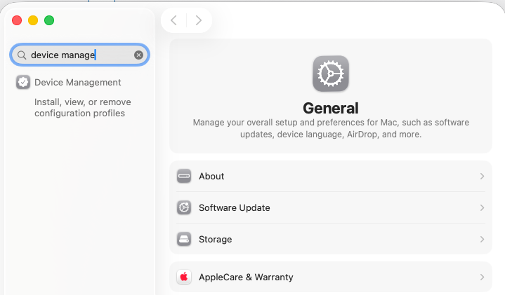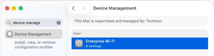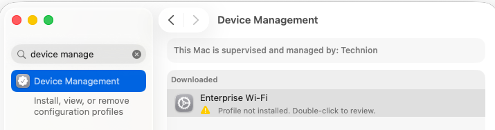 - לחץ על Device Management ותראה את הפרופיל החדש במצב המתנה: